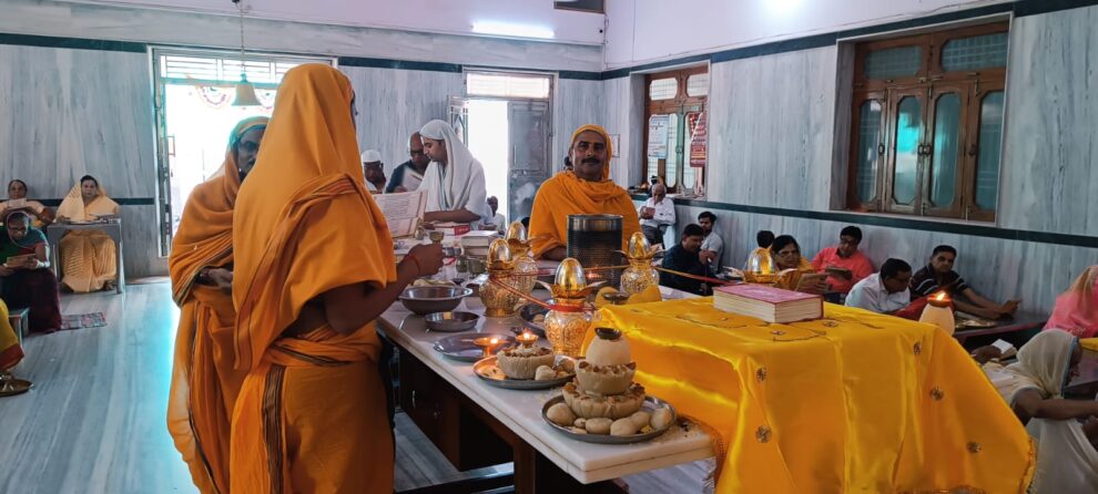 तत्पश्चात पंडित अंकित जैन शास्त्री के कुशल निर्देशन में मंत्रोंच्चारण के साथ श्रीजी के समक्ष मांडले पर अर्घ्य अर्पित कर श्री शांतिनाथ महामंडल विधान की मांगलिक क्रियाएं संपन्न कीं। उसके बाद भक्तों ने सामूहिक रुप से निर्वाण कांड का वाचनकर भगवान शांतिनाथ के समक्ष सोलह किलो का निर्वाण लाडू अर्पित किया।