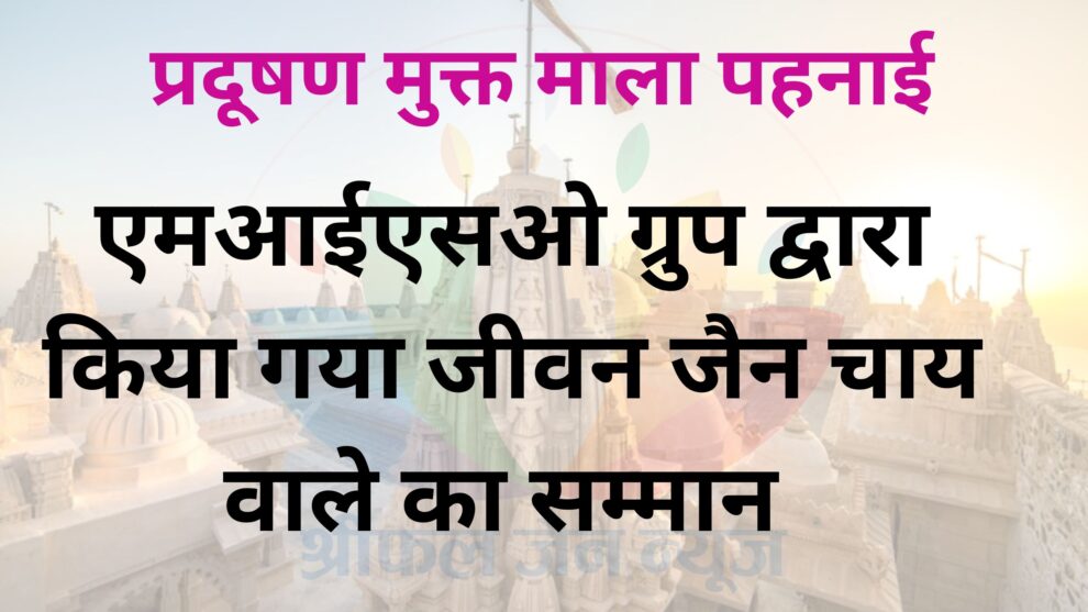 प्रदूषण मुक्त माला पहनाई : एमआईएसओ ग्रुप द्वारा किया गया जीवन जैन चाय वाले का सम्मान