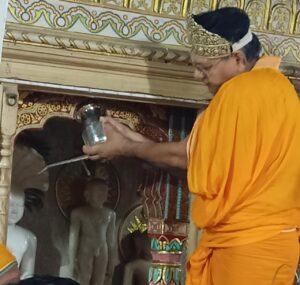 पारसनाथ भगवान की प्रतिमा के ऊपर भक्तों द्वारा प्रथम अभिषेक शांतिधारा की गई। समाज के मंत्री ललित शेट्टी और चातुर्मास कार्यक्रम के संयोजक सुरेंद्र काला ने भी लोगों को संबोधित किया।