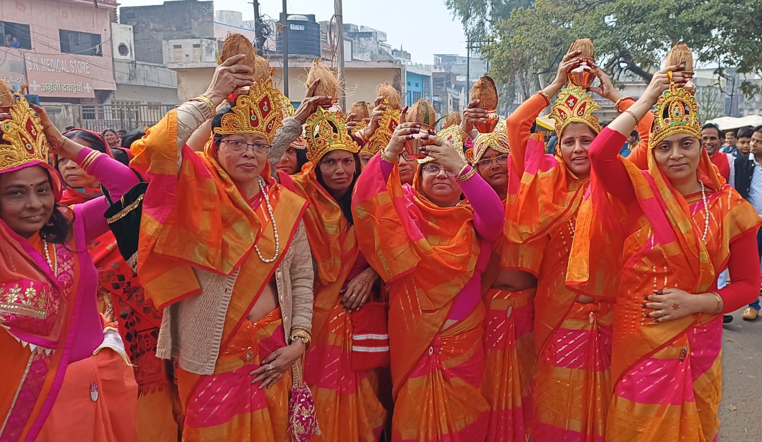 आगरा। आचार्य श्री चैत्यसागर जी महाराज ससंघ के मंगल सानिध्य में रविवार से मोती कटरा स्थित श्री अग्रवाल दिगंबर जैन बड़ा मंदिर में पांच दिवसीय श्री चतुविशंति तीर्थंकर दिगंबर जिनबिंब पंचकल्याणक प्रतिष्ठा महोत्सव का शुभारंभ हुआ। महोत्सव की शुरुआत ध्वजारोहण एवं भव्य मंगल घटयात्रा के साथ हुई। घटयात्रा में सौभाग्यशाली 51 महिलाएं केसरिया साड़ियों में अपने सिर पर कलश को शोभायमान किए थीं। इस दौरान भक्तों में खासा उत्साह देखने को मिला।