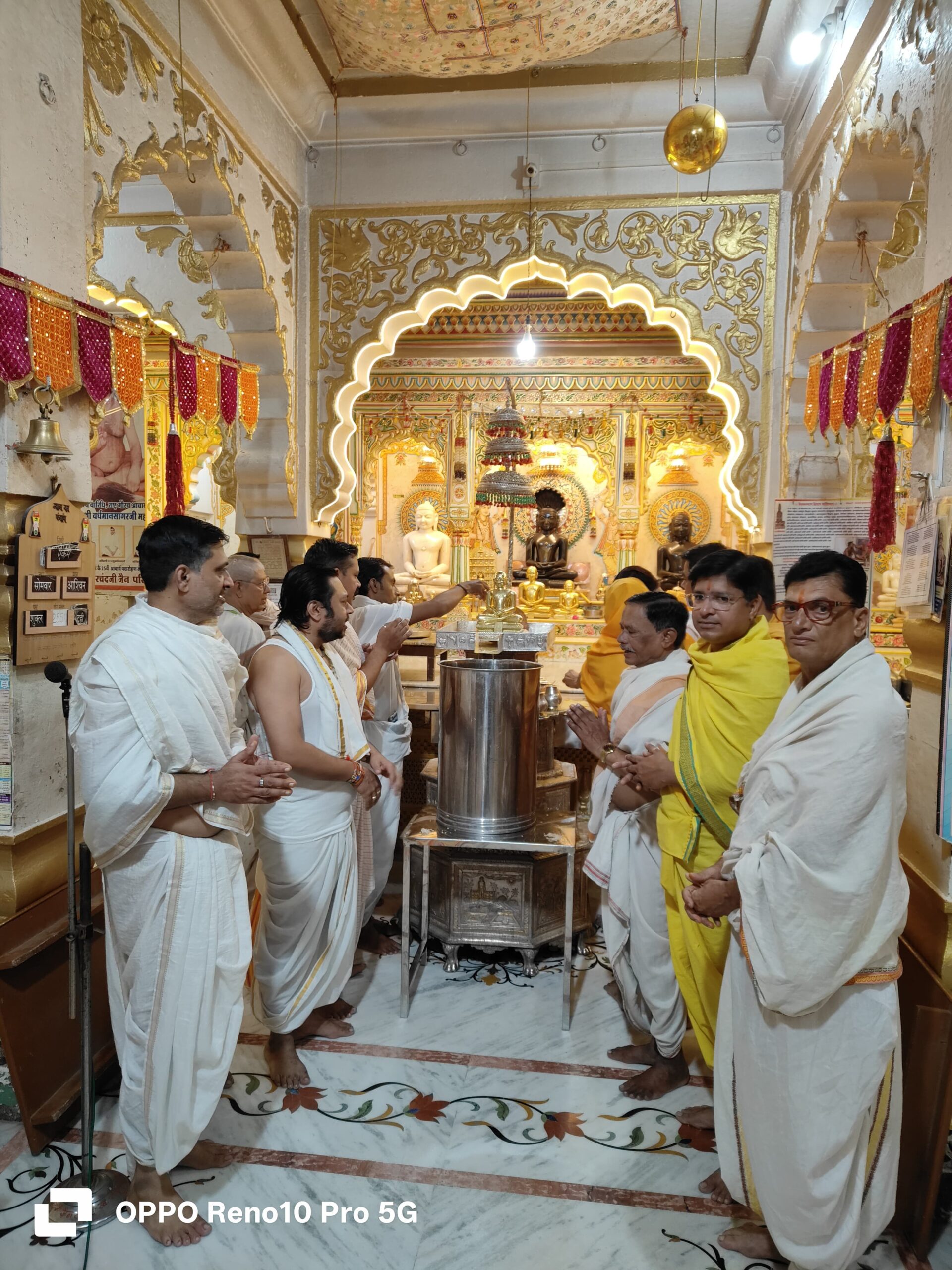 मुनिश्री ने अपने उद्बोधन में कहा कि शान्तिधारा मनुष्य जीवन की सफलता और उन्नति की सिद्धि में अत्यंत महत्वपूर्ण है। यह अनुष्ठान विश्वशांति और जीवन की बाधाओं को दूर करने में सहायक होता है। इस अवसर पर हेमेन्द्र काका, निमिष जैन, प्रशांत जैन, इंजीनियर मनोज जैन, मयंक धनोते, अक्षय सराफ, मुकेश जैन, परिन जैन, आशीष जैन, विशाल वैभव सराफ, चिराग लश्करे, अनुभव सराफ, हेमू जैन, सुधीर जैन, राहुल स्वास्तिक और प्रतीक जैन सहित अनेक समाजजन उपस्थित रहे और धर्म प्रभावना में सहयोगी बने।