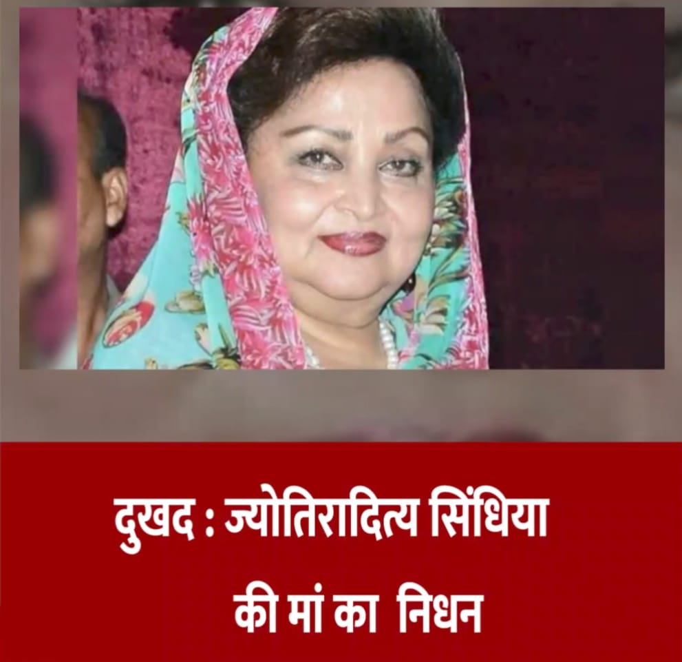 ज्योतिरादित्य सिंधिया की माता माधवी राजे सिंधिया का निधन  देश के लिए है गहरा दुःखद समाचार
