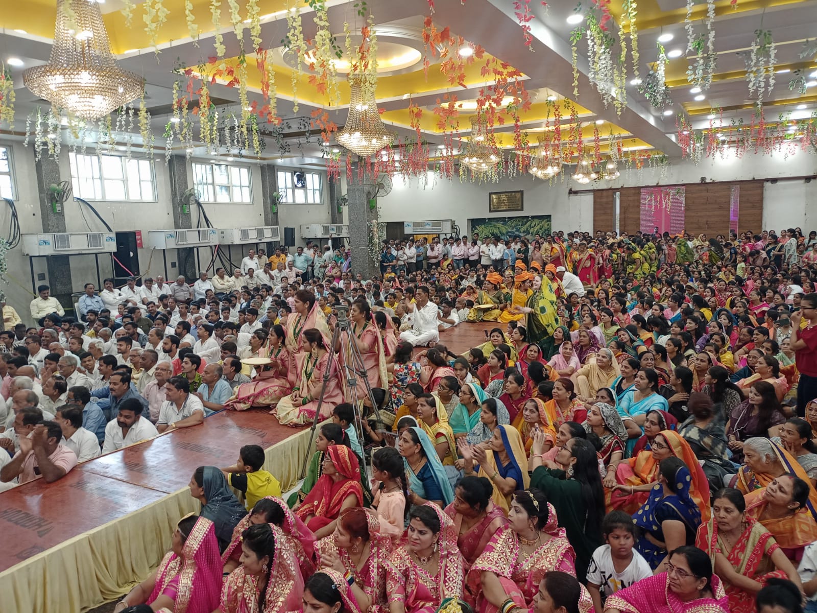 मंच के आगे सुन्दर कलाकृति में शोभायमान कलश सबके आकर्षण का केंद्र बने हुए थे। मंच के पीछे व आगे कलाकृतियो में कमल खिले नजर आ रहे थे तो पांडाल में भक्तों के मन कमल की तरह खिले हुए प्रतीत हो रहे थे। 3 मुनिराजों के मंच पर आते ही पांडाल जयकारों से गूंज उठा। विशाल पंडाल ऐसा लग रहा था जैसे किसी मंदिर का प्रांगण हो और वहां भक्त उत्सव मना रहे हों। महिला मंडल द्वारा सुन्दर मंगलाचरण किया गया। इसके बाद दीप प्रज्जवलन, पाद प्रक्षालन, शास्त्र भेंट आदि मांगलिक कार्य संपन्न हुए। चातुर्मास की घोषणा होते ही भक्तों को सबसे ज्यादा प्रतीक्षा होती है, चातुर्मास कलश स्थापना के दिवस की। हो भी क्यों ना, इस दिन उनके मन और हृदय में संतों का सानिध्य मिलने से जो खुशी की लहरें उठ रही होती है, उनको ही वे इस दिन उत्सव मनाकर प्रकट करते हैं।