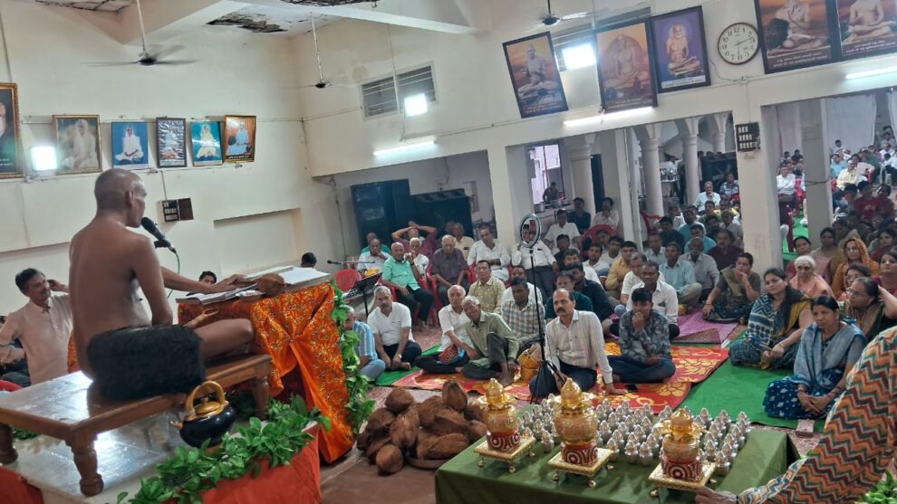 दाहोद। चातुर्मास मंडल कलश स्थापना कार्यक्रम भगवान पद्मप्रभु जिनालय के आचार्य पुष्पदंत निलय में उपाध्याय श्री सुदत्त सागर जी महाराज के सानिध्य में हुआ। दोपहर में हुए इस कार्यक्रम में प्रथम मुख्य कलश अन्नू बेन शीतल भाई शाह परिवार, द्वितीय कलश हितेश भाई सरैया परिवार, अन्य कलश झबुआ गुरुभक्त परिवार, मयंक जैन परिवार, शैलेश भाई सरैया परिवार द्वारा लिया गया। बड़ी संख्या में गुरुभक्त राजस्थान मध्य प्रदेश से उपस्थित रहे। साथ ही नगर के समस्त जैन समाज ने कार्यक्रम में उपस्थित रहकर धर्म लाभ लिया।