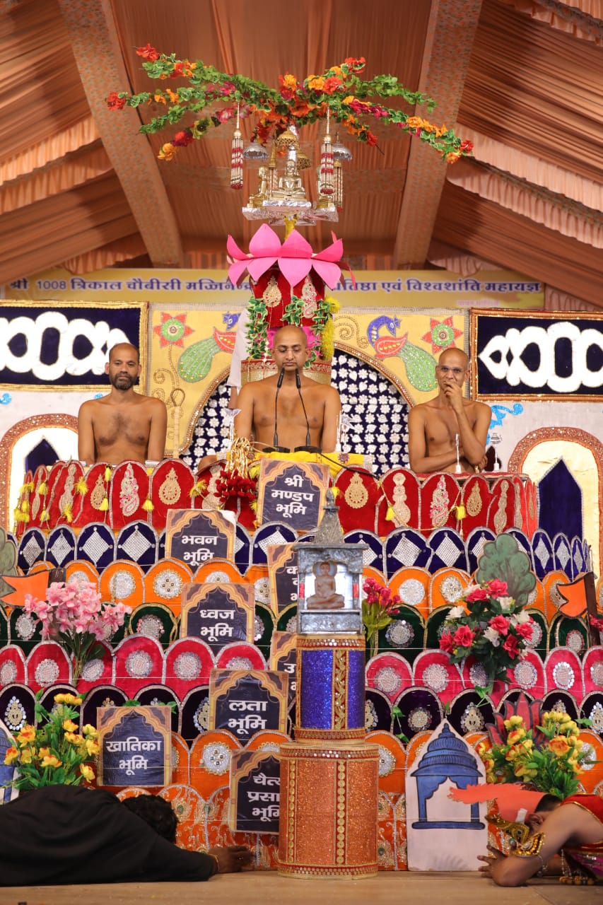 दोपहर में समवशरण की रचना की गई। इस सभा में इंदौर नगर के मूर्धन्य विद्वान पंडित रतनलाल, प्रवीण जैन, पीसी जैन, मनीष जैन, अर्पित वाणी, टीके वेद, राजेश जैन दद्दू आदि समाज जन उपस्थित हुए। समवशरण में केवलज्ञान होने के बाद सौधर्म इन्द्र की आज्ञा से कुबेर विशेष रत्न एवं मणियों से समवशरण की रचना करता है। समवशरण मे बारह घेरे होते हैं। शाम को भव्य आरती की गई। जिसमें बड़ी संख्या में पुरुष एवं महिलाएं संगीत की धुन पर नृत्य करते आरती की।