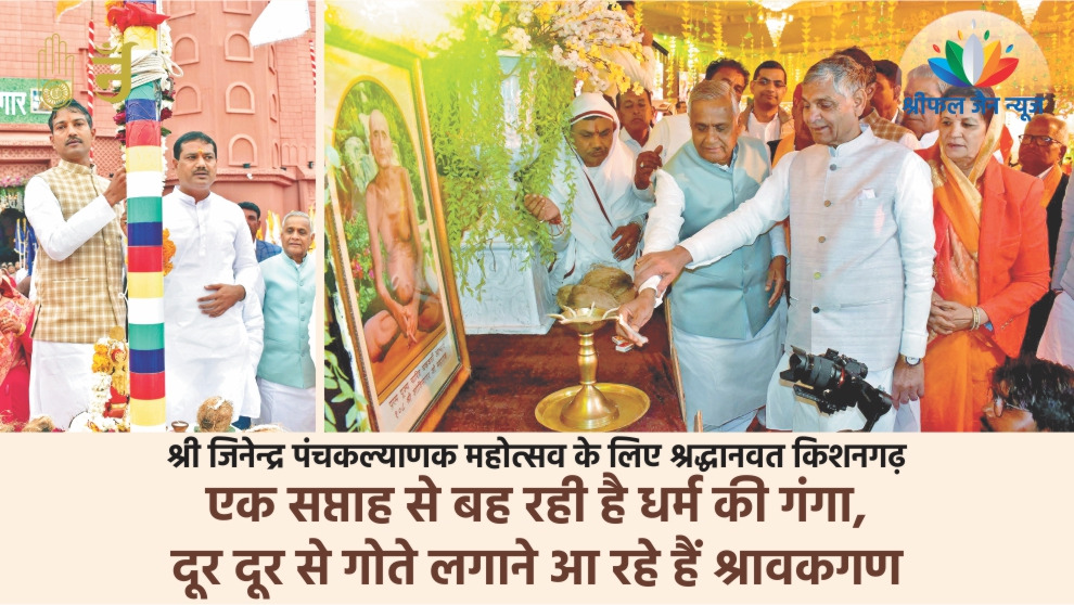 कृष्णगढ़ की धरा श्री जिनेन्द्र पंचकल्याणक महोत्सव के कारण श्री जिनेन्द्रमय हो रखी है। विगत सात दिन से कला, व्यापार, शिक्षा व धर्म की नगरी में ना केवल देश के कोने कोने से अपितु विश्व के कई देश से श्रावक श्राविकाएं श्री जिनेन्द्र पंच कल्याणक महोत्सव के साक्षी बनने के लिए आ रहें है। पढ़िए वि्स्तार से हमारे सहयोगी श्याम मनोहर पाठक की रिपोर्ट