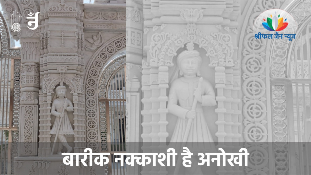 गोयल स्टोनेक्ट के प्रोपराइटर उमेश गोयल ने बताया कि मंदिर निर्माण में उपयोग में लिया गया मोरवड़ माइंस का पत्थर अत्यधिक कठोर होने के बावजूद कुशल कारीगरों ने इसी पत्थर पर नक्काशी का कार्य कर इसे बेजोड़ बना दिया है। पत्थरों पर की गई नक्काशी इस ओर से गुजरने वालों को अपनी ओर आकर्षित कर लेती है। मंदिर में माउंट आबू के दिलवाड़ा मंदिर की भी झलक दिखती है। मंदिर में श्री जिनेन्द्र की 27 प्रतिमाएं हैं। मंदर प्रांगण में पीछे की ओर संघ के लिए दस कमरे भी बनाए गए हैं।