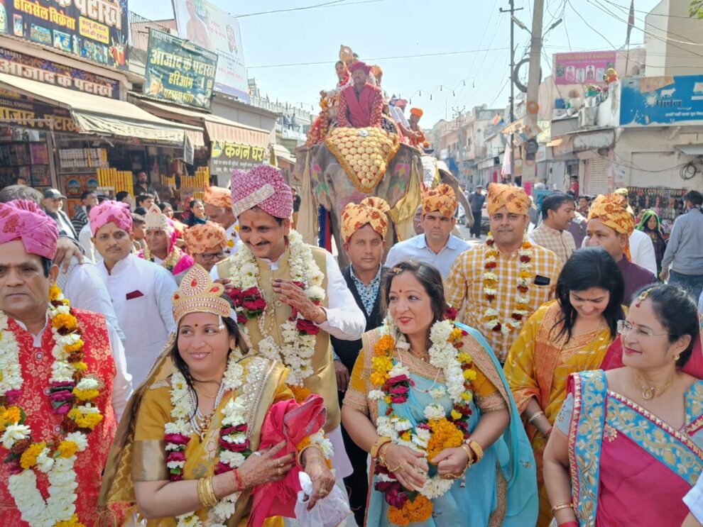 आठ बग्घियों में विमल कुमार, महेन्द्रकुमार, समर्थ कुमार पाटनी उरसेवा वालों का परिवार सवार था। बैंड की मधुर ध्वनियों के बीच निकली यात्रा के दौरान जैन समाज के लोगों ने नृत्य करते हुए खुशियां मनाईं। चक्रवर्ती परिवार का जगह-जगह जैन समाज के लोगों ने श्रीफल भेंटकर अभिनंदन किया। भगवान के माता-पिता ने संहितासूरि पंडित हंसमुख जैन धरियावद के मंत्रोच्चार के बीच तीर्थंकर बालक का राज्याभिषेक करवाया गया। बाद में वैराग्य दर्शन व तीर्थंकर महाराज का गृह त्याग का मंचन किया गया।