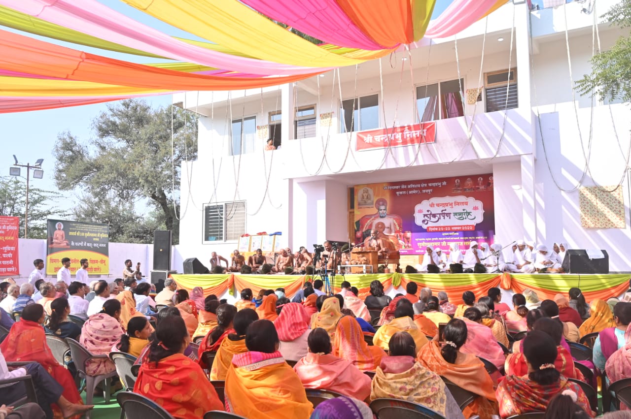 जयपुर | जयपुर दिल्ली हाइवे पर कूकस में स्थित 500 वर्ष प्राचीन तपोभूमि श्री दिगंबर जैन अतिशय क्षेत्र चन्द्रप्रभु जी में परमपूज्य गुरुदेव आचार्य श्री सुनील सागर जी मुनिराज ससंघ के पावन सानिध्य में श्री चन्द्रप्रभु निलय का भव्य लोकार्पण हुआ। क्षेत्र के मंत्री प्रदीप गोधा ने बताया की आचार्य श्री का भव्य जुलूस के साथ प्रातः 9 बजे कूकस मे मंगल प्रवेश हुआ। सर्वप्रथम लोकार्पणकर्ता सुनील जैन- ऊषा पहाड़िया ने आचार्य श्री को श्रीफल अर्पित करते हुए चित्र अनावरण किया। वही दीप प्रज्वलन अनिल दीवान व शास्र भेंट अशोक शकुंतला चांदवाड ने किया।