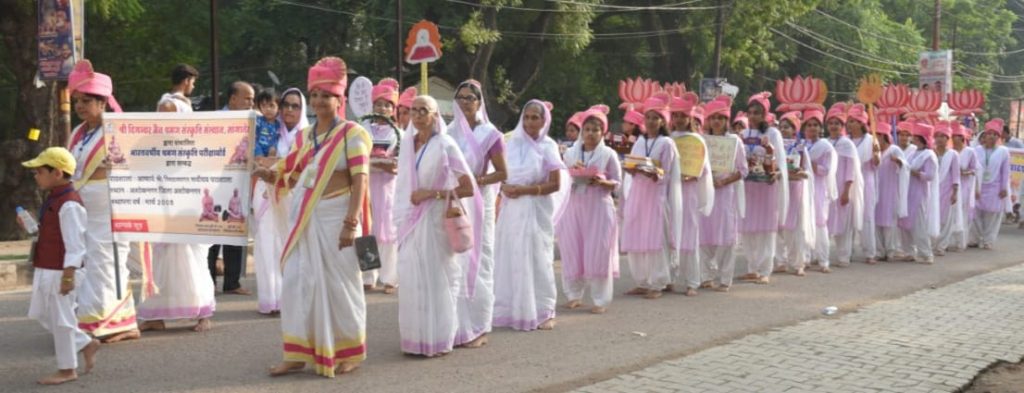इसके पूर्व रविवार प्रातःकाल श्री पार्श्वनाथ दिगम्बर जैन अटामंदिर से पाठशाला महाअधिवेशन में भव्य शोभायात्रा प्रारम्भ हुई जिसमें देश के 15 राज्यों के 116 जिलों से आए पाठशाला परिवार ने सम्मलित होकर अपनी प्रतिभा का प्रदर्शन किया।शोभायात्रा में पाठशाला संचालिकाएं धर्म और संस्कृति का प्रदर्शन कर रहीं थीं। शोभायात्रा में पाठशाला परिवार ललितपुर, बाहुबलि सेवा संघ, सुधा कलश मण्डल का दिव्यघोष जहां आकर्षण का केन्द्र रहा, वहीं राजस्थान, मप्र सहित अनेक राज्यों के पाठशाला परिवार के बच्चे कहीं डाडिया तो कहीं गरवा करते हुए शोभायात्रा में चार चांद लगा रहे थे। शोभायात्रा में धर्म संस्कृति के सिलोगन के साथ- साथ हथकरघा झांकियां भी रहीं। श्वेत ध्वज पताका के साथ शोभायात्रा अपने आप में अनूठी रही जिसमें निर्यापक मुनि सुधासागर महाराज अपने संघस्थ मुनि पूज्यसागर महाराज, एलक धैर्यसागर महाराज, क्षुल्लक गम्भीर सागर महाराज के साथ चल रहे थे जिनकी श्रावकों ने आरती उतारी और पादप्रक्षालन कर आशीर्वाद ग्रहण किया।