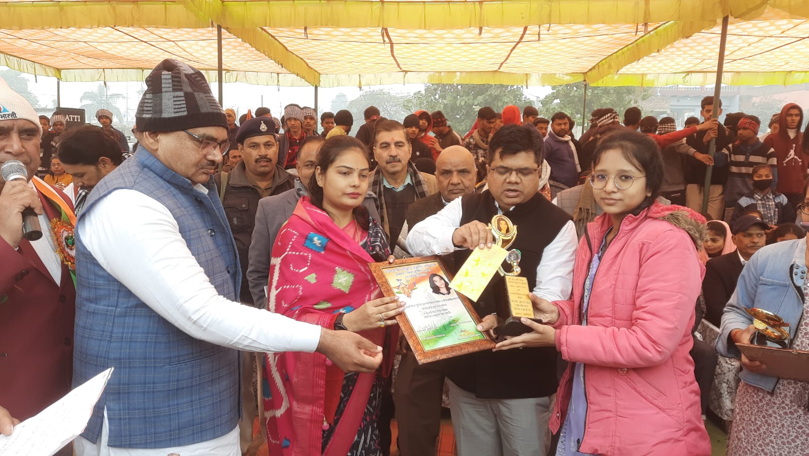 कार्यक्रम के प्रारंभ में एसडीएम अरविंद कुमार ने कक्षा 12 में प्रथम स्थान प्राप्त करने वाली छात्रा अंजली शर्मा,अपूर्वा किरार एवं कक्षा 10 में प्रथम स्थान प्राप्त करने वाली छात्रा खुसी तोमर एवं सांस्कृतिक कार्यक्रम में प्रतिभा का परचम लहराने वाली पीजी कॉलेज की छात्रा सोनाली शर्मा के उज्जवल भविष्य के लिए हौसला अफजाई की वही प्राची के पिता वरिष्ठ समाजसेवी कविंद्र सिंह तोमर एवं माता पार्षद पूर्णिमा तोमर ने प्रतिभाशाली छात्र छात्राओं को शील्ड प्रशस्ति पत्र एवं नगद राशि देकर पुरस्कृत किया।