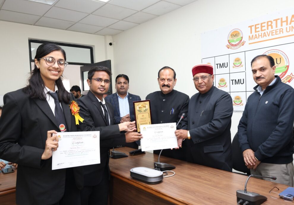 तीर्थंकर महावीर यूनिवर्सिटी के कॉलेज ऑफ लॉ एंड लीगल स्टडीज में आयोजित लेक्स कर्निवाल–चैप्टर 02 के दौरान मूट कोर्ट और पार्लियामेंट्री डिबेट में छात्रों ने उत्कृष्ट प्रस्तुति दी। मुख्य अतिथि बार अध्यक्ष आनंद मोहन गुप्ता ने कहा कि लॉ स्टुडेंट्स में सीखने की ललक हमेशा बनी रहनी चाहिए। पढ़िए पूरी रिपोर्ट…