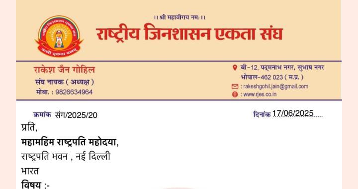 दिल्ली से आरंभ हुई नेमि-गिरनार धार्मिक राष्ट्रीय पदयात्रा के संबंध में विगत 17 जून को राष्ट्रीय जिन शासन एकता संघ ने राष्ट्रपति द्रोपदी मुर्मू को पत्र लिखकर यात्रा के निर्विघ्न संपन्न करवाने की गुहार की है। नईदिल्ली से पढ़िए, यह खबर…