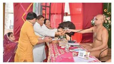 मीडिया प्रभारी प्रदीप झांझरी ने बताया कि श्रुतपंचमी महापर्व पर आयोजित राष्ट्रीय निबंध प्रतियोगिता 2023 के प्रतियोगियों को सम्मानित किया। पाद प्रक्षालन का सौभाग्य भरत कुमार जैन अध्यक्ष सकल जैन समाज परासिया ने प्राप्त किया। भक्ति नृत्य की प्रस्तुति श्रीसिद्ध क्षेत्र महावीर तपोभूमि के प्रज्ञा कलामंच के कलाकारों ने दी। डॉ. सुनील जैन, संचय ललितपुर और डॉ. राजेंद्र महावीर सनावद का सम्मान वर्षा योग समिति ने उनके श्रुत संवर्धन के प्रति समर्पण के लिए किया। इस अवसर पर चातुर्मास समिति के अध्यक्ष शांति कुमार कासलीवाल, ऋषिनगर जैन समाज के अध्यक्ष प्रमोद जैन, अनिल गंगवाल, अजित सेठी, अरविंद बुखारिया, अशोक जैन, आरसी जैन, दिनेश गोधा, जितेंद्र पडत, सत्येंद्र जैन, स्नेहलता सोगानी, संजय जैन, नितिन डोसी, सुनील कासलीवाल, दिलीप सोगानी आदि ने गुरु चरणों में विनयांजलि प्रस्तुत की।
