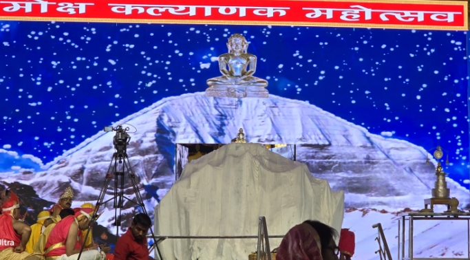 इस मौके पर मुनि श्री सुधासागर जी महाराज ने कहा कि पुण्य के अभाव में कोई काम नहीं आता। जिनके आगे पीछे इन्द्र थे। जन्म पर रत्नवृष्टि हुई। सारा वैभव था, जब पुण्य में हीनता आई वैराग्य हुआ और कैलाश पर्वत से मोक्ष गए और कपूर की भांति शरीर विलीन हो गया। प्रतिष्ठाचार्य बालब्रहमचारी प्रदीप भैया ने भगवान आदिनाथ के मोक्ष के पश्चात कैलाश पर्वत पर अग्निकुमार इन्द्रों ने हवन किया। इसके उपरान्त विश्व शांति महायज्ञ में इन्द्र इन्द्राणियों ने पूर्ण आहुति दी।