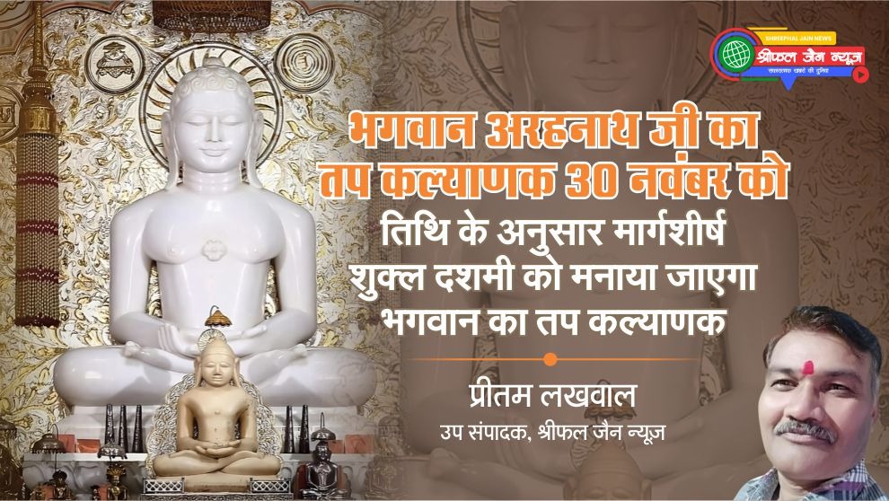 जैन धर्म के 18वें तीर्थंकर भगवान अरहनाथ का तप कल्याणक 30 नवंबर को मनाया जाएगा। इस दिन दिगंबर जैन मंदिरों, चैत्यालयों में भगवान का विशेष पूजन, आराधना और विभिन्न धार्मिक कार्यक्रम आयोजित किए जाएंगे। तिथि के अनुसार भगवान अरहनाथ का तप कल्याणक मार्गशीर्ष शुक्ल दशमी के दिन आता है। श्रीफल जैन न्यूज की विशेष श्र्ंखला में आज पढ़िए, उपसंपादक प्रीतम लखवाल की यह संकलित और संपादित प्रस्तुति…