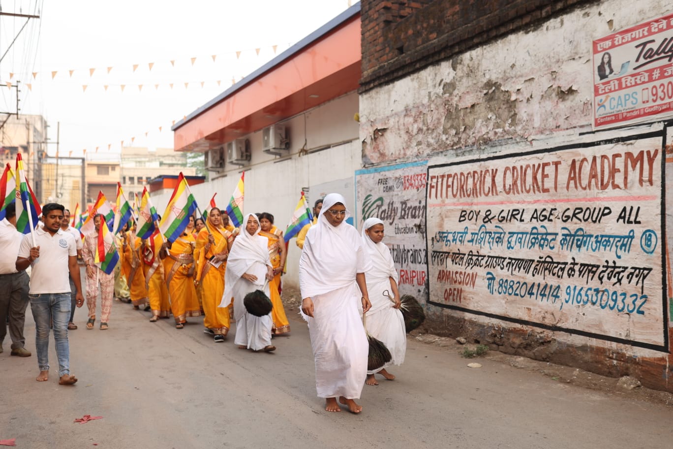 आज दिनांक 13 अप्रैल को सुबह 6.30 बजे प्रतिदिन की तरह प्रभात फेरी का आयोजन किया गया यह प्रभात फेरी श्रीश्री दिगंबर जैन मंदिर सन्मति नगर से फाफाडीह होते हुए श्री कुंयुनाध जैन श्वेताम्बर मंदिर में समाप्त हुई। जहा कार्यक्रम संयोजक एवं प्रभारी श्री साधुमार्गी जैन समता युवा संघ, रायपुर के सदस्य के साथ बड़ी संख्या में धर्म प्रेमी बंधु उपस्थित थे।प्रभात फेरी में बच्चो ने धार्मिक एवं सामाजिक संदेश के लिए वेशभूषा धारण कर फैंसी ड्रेस में भाग लिया। 13 अप्रैल शनिवार को भगवान महावीर जन्म कल्याणक महोत्सव समिति के द्वारा सांस्कृतिक एवं सामाजिक कार्यक्रमों में आज सुबह 11:00 योग चिकित्सा शिविर वीर आयुर्वेद हेल्थ केयर, रायपुर स्थल : सुभाष स्टेडियम मोतीबाघ चौक, रायपुर द्वारा,दोप. 2:00 भाव से भव बदलें श्री साधुमार्गी जैन महिला समिति एवं समता बहुमंडल द्वारा स्थल : सुराना भवन, छोटापारा में,,दोप. 3:00 प्रश्न मंच एवं जैन धार्मिक गेम नवकार मंडल, डी. डी. यु. नगर स्थल : दिगम्बर जैन मंदिर, डी. डी. यु. नगर में, शाम 7:00 लूडो का खेल मोक्ष की रेल,जागृति बहुमंडल, विवेकानंद नगर,स्थल : ज्ञानवल्लभ उपाश्रय, विवेकानंद नगर में आयोजित किए जाएंगे।