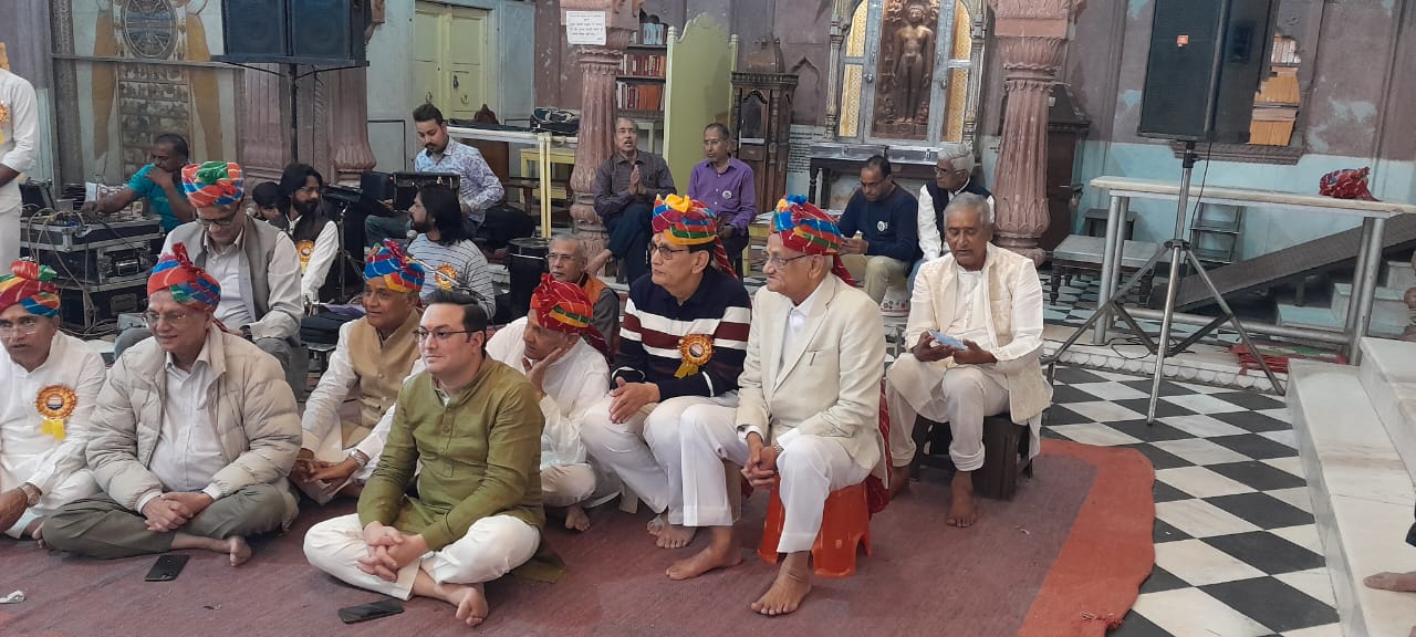 इससे पूर्व विश्व शांति प्रदायक णमोकार महामंत्र का 9 बार सामूहिक जाप किया गया। इस मौके पर सभी गौरवशाली पात्रों एवं कमेटी पदाधिकारियों का श्री विद्यासागर यात्रा संघ जयपुर की ओर से मनीष चौधरी, विनोद जैन कोटखावदा,शीला डोड्या,रचना चौधरी,गौतम जैन,सुरभि,रुपा,प्राची, प्रदीप,अमन जैन ने सम्मान किया। तत्पश्चात सुशीला पाटनी एवं मनीष चौधरी ने मंगलाष्टक उच्चारित करते हुए मांगलिक शेष अक्षत चारों ओर बिखेरे।