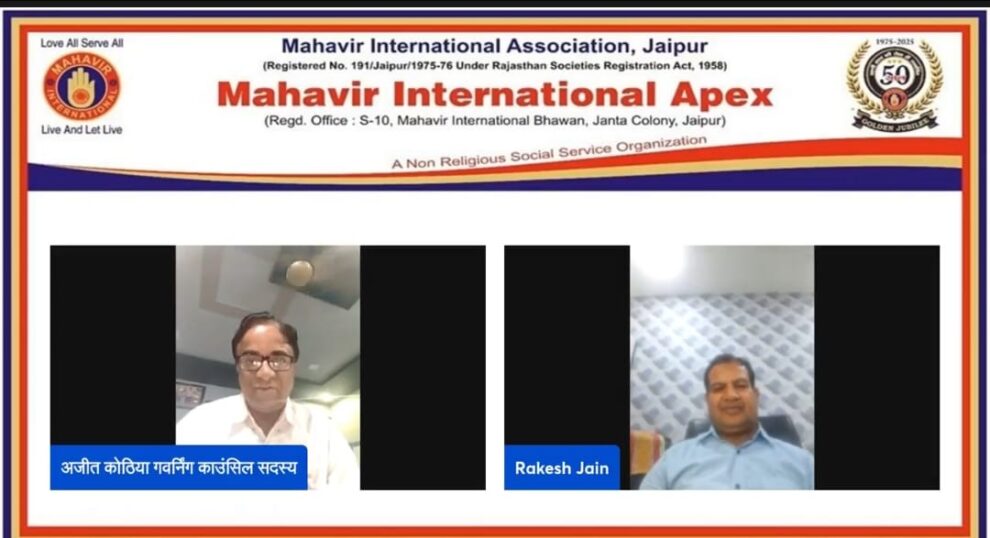 नौगामा। महावीर इंटरनेशनल के गोल्डन जुबली आयोजन के तहत मंगलवार को गोल्डन थ्रेड कार्यक्रम में होस्ट गवर्निंग काउंसिल सदस्य अजीत कोठिया डडूका ने नौगामा केंद्र अध्यक्ष सुरेशचंद्र गांधी तथा रतलाम-नीमच जोन चेयरमेन राकेश जैन का फेसबुक लाइव पर साक्षात्कार किया। राकेश जैन ने मंदसौर में मानवता सेवा कार्यों और पशुपति नाथ मंदिर की समग्र जानकारियां दी। उन्होंने बताया कि विगत 20 वर्षों में उन्होंने पीड़ित मानवता सेवा में सहभागिता निभाते हुए अपना जीवन समर्पित किया। इस अवसर पर अजीत कोठिया के सवालों के जवाब देते हुए सुरेश गांधी ने बताया कि सकोरा वितरण, रक्तदान और वृक्षारोपण कार्यक्रम से वागड़-मेवाड़ क्षेत्र में महावीर इंटरनेशनल की विशेष पहचान बनी है। गांधी ने नौगामा में हुए सफल संभागीय अधिवेशन, सुखोदय तीर्थ नसियाजी नौगामा तथा वहीं बने वागड़ क्षेत्र के लघु सम्मेद शिखरजी तीर्थ की विस्तृत जानकारी शेयर की।