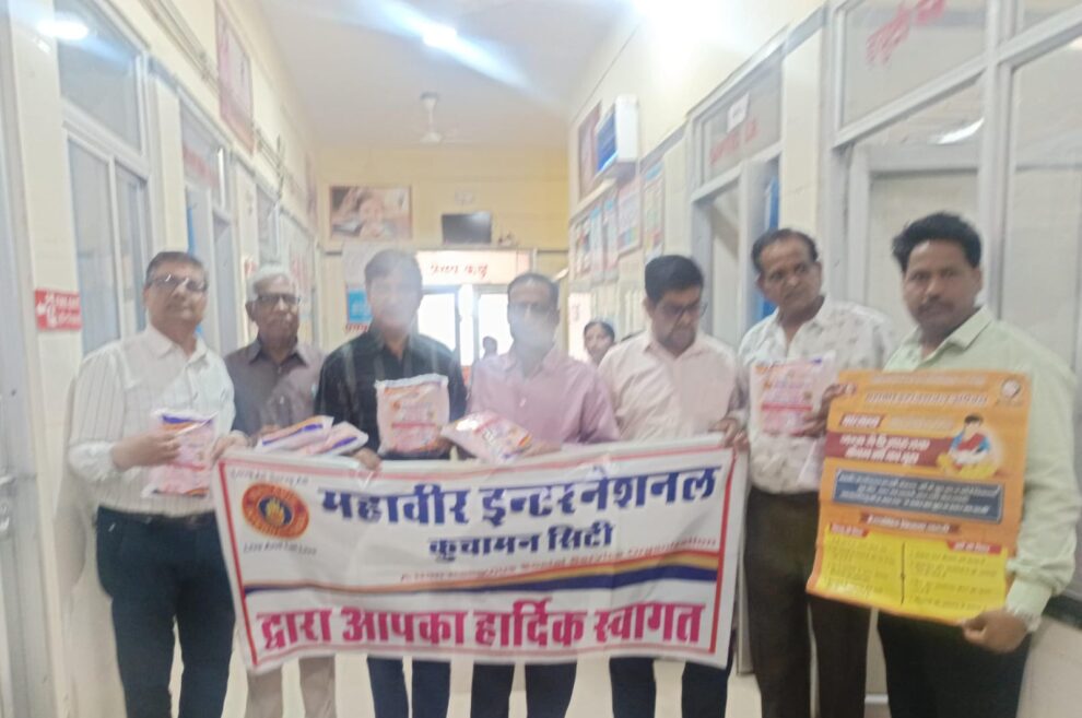 कुचामन सिटी। सबकी सेवा सबको प्यार जिओ और जीने दो के उद्देश्य से संचालित सामाजिक संस्था महावीर इंटरनेशनल वीर, वीरा, युवा कुचामन सिटी की ओर से सामाजिक सरोकार के तहत राजकीय चिकित्सालय कुचामन सिटी में नवजात बच्चों को संक्रमण से बचाव के लिए हाईजैनिक बेबी किट का वितरण किया गया। युवा केंद्र के अध्यक्ष आनंद सेठी ने बताया कि संस्था द्वारा राजकीय चिकित्सालय में वर्ष पर्यंत नवजात बच्चों को बेबी किट का वितरण किया जाता है।