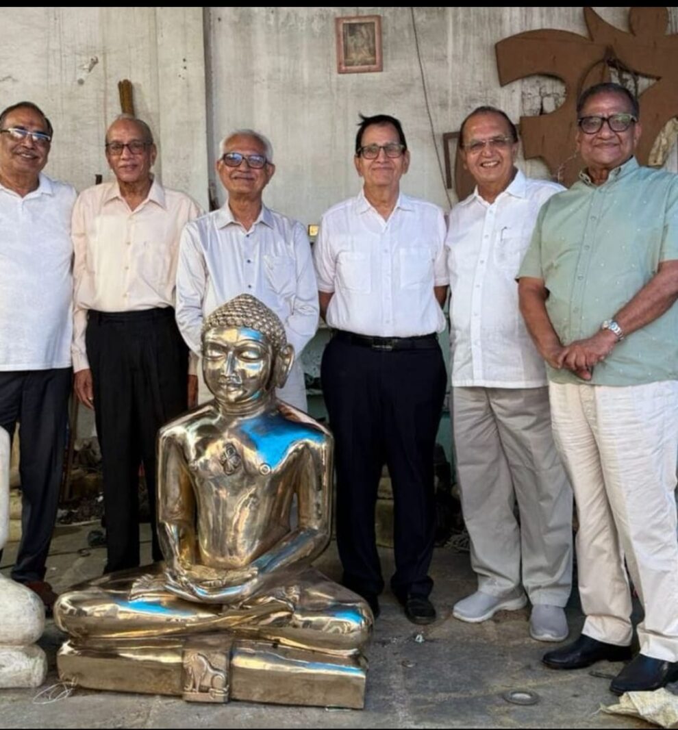 भगवान महावीर की प्रतिमा शीघ्र ही विराजमान होगी श्री महावीर जी रेलवे स्टेशन प्रांगण में : जैन समाज के पदाधिकारियों ने किया निर्माणाधीन प्रतिमा का अवलोकन