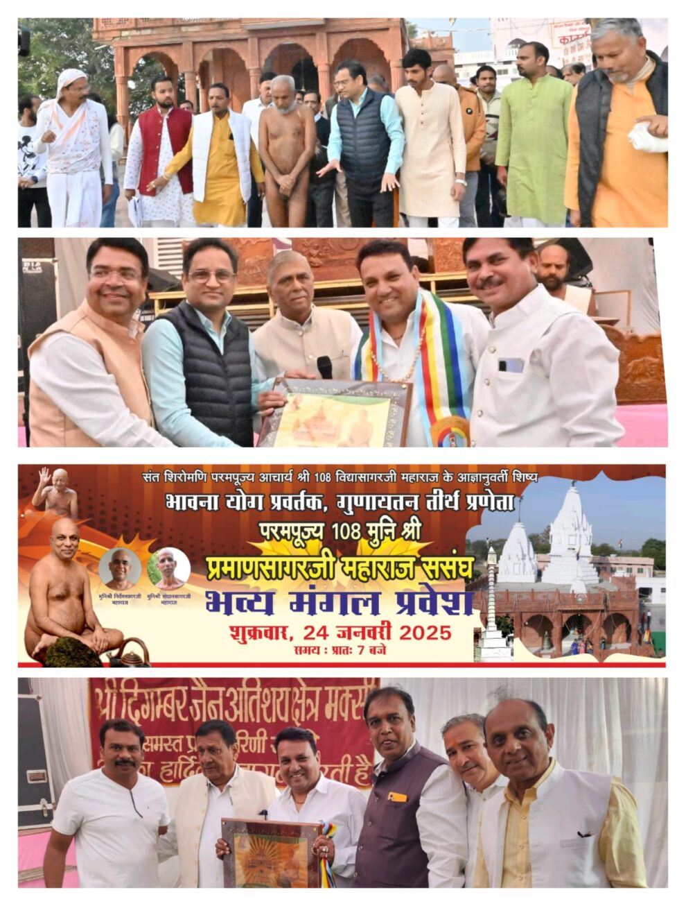 मक्सी। स्थानीय श्री दिगंबर जैन पार्श्वनाथ अतिशय तीर्थ क्षेत्र में भावना योग प्रवर्तक, गुणायतन तीर्थ प्रणेता मुनिश्री प्रमाणसागरजी महाराज ससंघ का शुक्रवार सुबह मंगल प्रवेश हुआ। मक्सी तीर्थ के पदाधिकारियों, समाजजनों और मक्सीवासियों को गुरुदेव का मंगल आशीर्वाद प्राप्त हुआ।