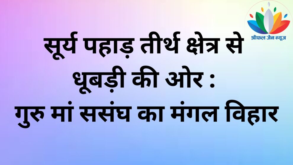 गणिनी आर्यिका शिरोमणि गुरुमां विंध्यश्री माताजी (ससंघ 6 पिच्छी) ग्वालपाड़ा जिले की पुण्य धरा पर स्थित श्री सूर्य पहाड़ अतिशय तीर्थ क्षेत्र पर लगभग डेढ़ महीने से प्रवासित हैं। गुरु मां ने आगामी 9 मार्च, 2023 को प्रातः 5:15 बजे चौबीसी एवं त्रिमूर्ति के दर्शन करते हुए धूबड़ी की ओर संघ के विहार करने की मंशा को समिति के साथ विचार- विमर्श कर अंतिम निर्णय लिया गया। पढ़िए सुनील सेठी की रिपोर्ट…