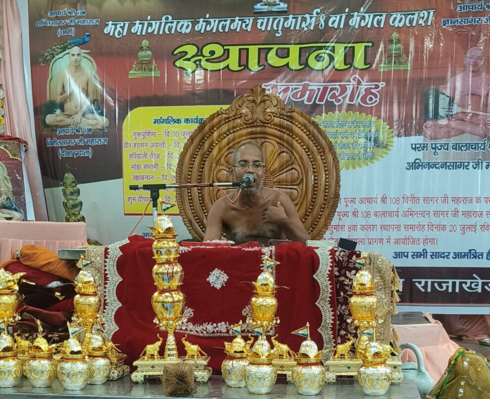 चातुर्मास का मंगल कलश मंगल का प्रतीक होता है। यह कहना है आचार्य श्री विनीत सागर जी के परम शिष्य आचार्य अभिनंदन सागर जी महाराज का। आचार्यश्री श्री आदिनाथ दिगंबर जैन मंदिर जैन धर्मशाला में आयोजित चातुर्मास कलश स्थापना कार्यक्रम के अवसर पर संबोधित कर रहे थे। राजाखेड़ा से पढ़िए, यह खबर…