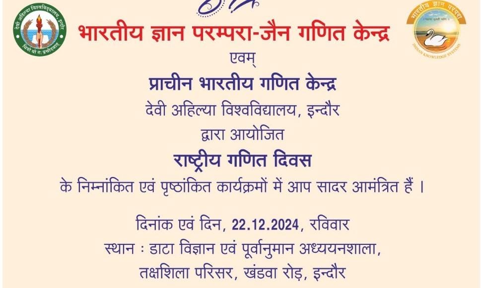 राष्ट्रीय गणित दिवस 22 दिसंबर कोः गणित दिवस पर देवी अहिल्या विश्वविद्यालय में होंगे कई कार्यक्रम
