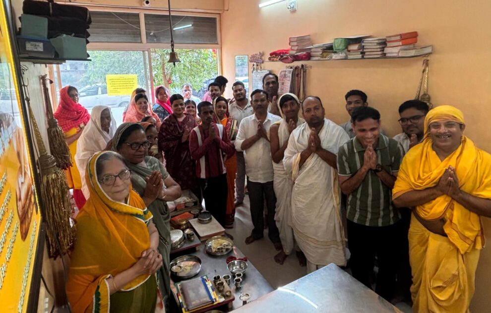 नारोल(अहमदाबाद)। विश्व नवकार दिवस के पावन अवसर पर गुरुवार को पूरे विश्व के साथ-साथ श्री 1008 चंदा प्रभु दिगंबर जैन चैत्यालय, नारोल में भी समाज के श्रद्धालुओं द्वारा अत्यंत श्रद्धा, भक्ति और उत्साह के साथ नवकार मंत्र का सामूहिक जाप किया गया। इस आध्यात्मिक कार्यक्रम में समाज के अनेक गणमान्य सदस्यों की उपस्थिति रही। सभी ने एक स्वर में नवकार मंत्र का जाप कर विश्व शांति, मानव कल्याण तथा समस्त जीवों के मंगल की भावना से प्रार्थना की। इस अवसर पर भगवान जिनेंद्र देव से प्रार्थना की गई कि सभी के जीवन में सुख, शांति और समृद्धि बनी रहे तथा पूरे विश्व में भाईचारा, सद्भाव और शांति का वातावरण स्थापित हो। साथ ही देश एवं विश्व के कल्याण की मंगल कामना भी की गई। कार्यक्रम समाज के ट्रस्टीगण की गरिमामयी उपस्थिति में सम्पन्न हुआ। जिनमें समाज के अध्यक्ष अजय जैन, जितेंद्र जैन, मनीष जैन, हितेश जैन सहित सभी कार्यकारिणी सदस्य एवं समाजजन उपस्थित रहे। कार्यक्रम में सभी ने एक दूसरे को जय जिनेंद्र कहकर विश्व शांति का संदेश दिया।