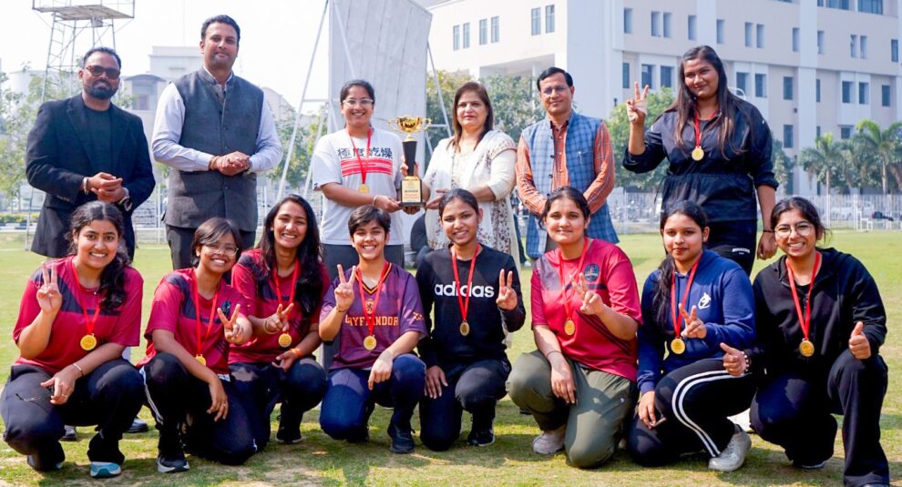 मुरादाबाद। तीर्थंकर महावीर यूनिवर्सिटी, मुरादाबाद की इंटरकॉलिजिएट चौंपियनशिप-2026 में मेडिकल कॉलेज की छात्राओं ने दो गोल्ड मेडल जीत लिए हैं। महिला क्रिकेट के संग-संग टेबल टेनिस की चौंपियनशिप अपने नाम कर ली है, जबकि पुरुष वर्ग की टेबिल टेनिस प्रतियोगिता में मैनेजमेंट कॉलेज ने स्वर्ण पदक झटक लिया है। मेडिकल कॉलेज बनाम सीसीएसआईटी के फाइनल मुकाबले में मेडिकल की वैष्णवी सचिन कटारिया ने सर्वाधिक 21 गेंदों में 36 रन बनाए जिसमें 4 चौके और 2 छक्के शामिल थे। मेडिकल की वैष्णवी सचिन कटारिया को वुमैन ऑफ द मैच चुना गया, जबकि टेबिल टेनिस में मेडिकल कॉलेज की सलोनी जैन ने नर्सिंग कॉलेज की श्रेया को 3-0 सेट से हराकर स्वर्ण पदक अपने नाम किया। फिजिकल एजुकेशन ने तीसरे स्थान के लिए फाइन आर्ट्स को 12 रनों से हराया। टेबिल टेनिस में तीसरे स्थान के लिए डेंटल कॉलेज की अनामला हसन ने फिजिकल एजुकेशन कॉलेज को 3-0 सेट से हराया। पुरुष वर्ग टेबल टेनिस का फाइनल मुकाबला मेडिकल और मैनेजमेंट कॉलेज के बीच हुआ। मैनेजमेंट कॉलेज के आरुष टंडन ने मेडिकल कॉलेज के दक्ष को 3-0 सेट से मात देकर स्वर्ण पदक अपने नाम किया। मेडिकल कॉलेज के दक्ष रजत पदक विजेता रहे। एसोसिएट डीन पीएचडी सेल डॉ. ज्योति पुरी ने बतौर मुख्य अतिथि, फिजिकल एजुकेशन कॉलेज के प्राचार्य प्रो. मनु मिश्रा, फैकल्टी श्री तौहिद अख्तर, रिसर्च स्कॉलर श्री चन्द्रशेखर आदि ने विजेता और उपविजेताओं टीमों को मेडल देकर सम्मानित किया।