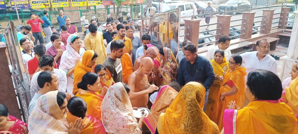 आगरा। मेडिटेशन गुरू उपाध्याय श्री विहसंत सागर जी महाराज एवं मुनिश्री विश्वसम्य सागर जी महाराज ससंघ 25 सितम्बर को नॉर्थ ईदगाह कॉलोनी स्थित श्री आदिनाथ दिगंबर जैन मंदिर से बैण्ड बाजों के साथ मंगल विहार कर जयपुर हाउस स्थित टीचर्स कॉलोनी के श्री शांतिनाथ दिगम्बर जैन मन्दिर पहुंचे। जहां भक्तों ने उपाध्यायश्री का पाद प्रक्षालन एवं मंगल आरती कर भव्य स्वागत किया। उपाध्यायश्री ससंघ के मंदिर पहुंचकर मूलनायक भगवान शांतिनाथ एवं सभी प्रतिभाओं के दर्शन किए। उसके बाद भक्तों को उपाध्यायश्री की मंगल वाणी श्रवण करने का अवसर मिला। इस दौरान अवधपुरी सकल जैन समाज ने उपाध्यायश्री के समक्ष श्रीफल भेंटकर मंगल आशीर्वाद प्राप्त किया। उपाध्याय श्री के मंगल प्रवेश में जैन युवा परिषद के सदस्य चल रहे थे।