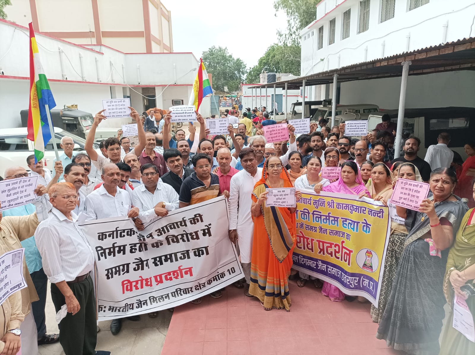 कर्नाटक में दिगंबर जैन आचार्य काम कुमार नंदी की निर्मम हत्या के विरोध में आक्रोशित जैन समाज छतरपुर द्वारा नेमिनाथ जिनालय कोतवाली से कलेक्टरेट परिसर तक एक रैली निकाली गई। इसके साथ ही सकल दिगंबर जैन समाज छतरपुर एवं भारतीय जैन मिलन क्षेत्र क्र. 10 की संभागीय इकाई द्वारा संयुक्त रूप से आरोपियों को कठोर दंड की मांग करते हुए राष्ट्रपति एवं कर्नाटक के मुख्यमंत्री के नाम डिप्टी कलेक्टर गोपाल शरण पटेल को दो ज्ञापन सौंपे गये। पढ़िए मनीष विद्यार्थी की रिपोर्ट…