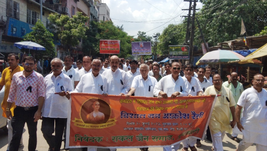 इससे पहले महावीर धर्म स्थल से समाज के लोगों ने मौन जुलूस निकाला। जुलूस में काफी संख्या में महिलाओं ने भी भाग लिया। दिगंबर जैन समाज के मत्रीं वीरेंद्र कुमार सरवगी ने अवगत कराया कि कर्नाटक में जैन मुनि की 5 जुलाई को निर्मम तरीके से हत्या कर मृत शरीर के टुकड़े कर बोरवैल में डाल दिए, जिससे संपूर्ण भारत में नहीं पूरे विश्व के जैन समाज में रोष व्याप्त है।
