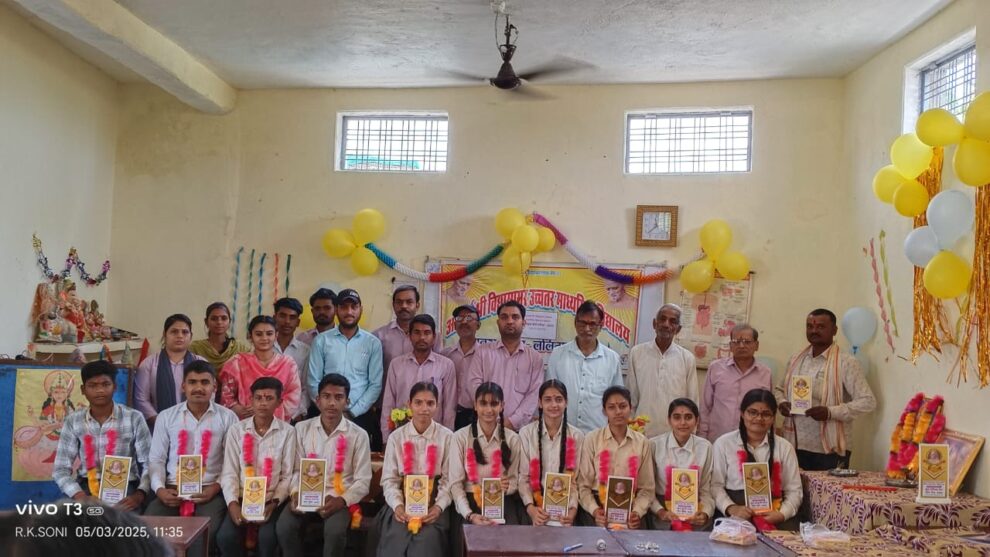 मंडावरा(ललितपुर)। यहां में आचार्य श्री विद्यासागर उच्चतर माध्यमिक विद्यालय में हाईस्कूल बोर्ड परीक्षा-2025 में सर्वश्रेष्ठ प्रदर्शन करने वाले छात्र-छात्राओं का सम्मान किया गया। विद्यालय प्रबंध समिति के पदाधिकारियों एवं प्रधानाचार्य ने मां सरस्वती पूजन एवं आचार्य श्री के चित्र के समक्ष दीप प्रज्ज्वलित किया। विद्यालय के हाईस्कूल की वर्ष 2025 की बोर्ड परीक्षा में विद्यालय के टाप टेन बच्चों का सम्मान समारोह आयोजित किया गया। कार्यक्रम के दौरान विद्यालय परिवार एवं विद्यालय प्रबंधन समिति ने मेधावी छात्र- छात्राओं को तिलक एवं माल्यार्पण करके स्मृति चिन्ह देकर सम्मानित किया। इस दौरान विद्यालय के प्रधानाचार्य चक्रेश जैन बताया कि आयुषी पटेल ने 90 प्रतिशत अंक के साथ प्रथम, खुशी रावत एवं सलिल नामदेव ने 89 प्रतिशत अंक के साथ द्वितीय, गौरी राजा ने 89 प्रतिशत अंक के साथ तृतीय, माही राजा एवं रमेश कुशवाहा ने 88 प्रतिशत अंक के साथ चतुर्थ, राधिका सेन ने 87 प्रतिशत अंक के साथ पंचम, खुशी लक्षकार ने 86 प्रतिशत अंक के साथ षष्ठम, कृष्णा कुमारी ने 85 प्रतिशत अंक के साथ सप्तम, प्रांजल असाटी ने 84 प्रतिशत के साथ अष्टम एवं राजवीरसिंह ने नौवा एवं अभिषेक ने 83 प्रतिशत अंक के साथ दसवां स्थान प्राप्त किया। मेधावी बच्चों ने विद्यालय एवं माता-पिता का नाम रोशन किया। सभी टाप टेन बच्चे बधाई के पात्र हैं।