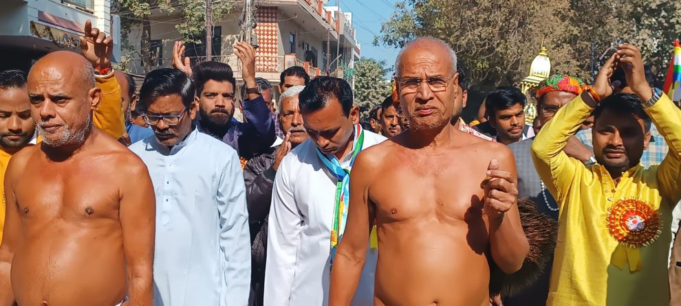 इसके बाद सौभाग्यशाली भक्तों ने श्रीजी की प्रतिमाओं को पालकी में विराजमान कर एवं मूलनायक भगवान पार्श्वनाथ की प्रतिमा को रथ पर विराजमान कर भव्य शोभायात्रा के साथ मंदिर जी में पहुंचाया। यहां सभी प्रतिमाओं को नवीन वेदी पर मुनि श्री के मंत्राेच्चारण के साथ विराजित किया गया।