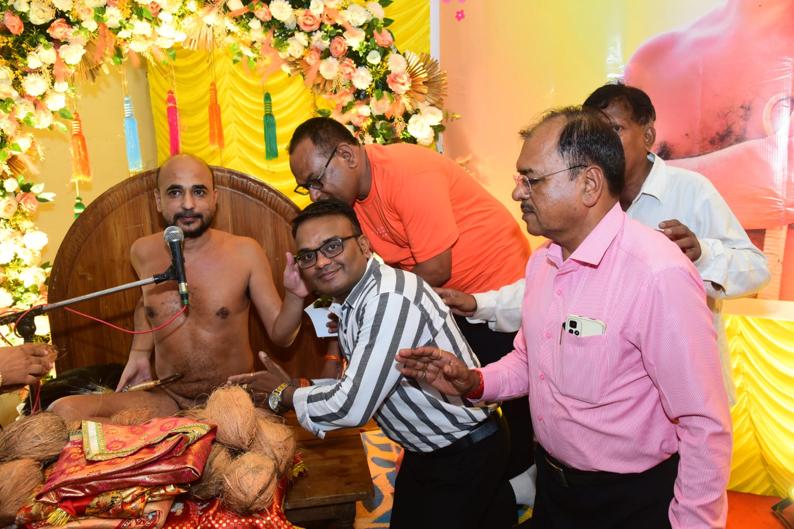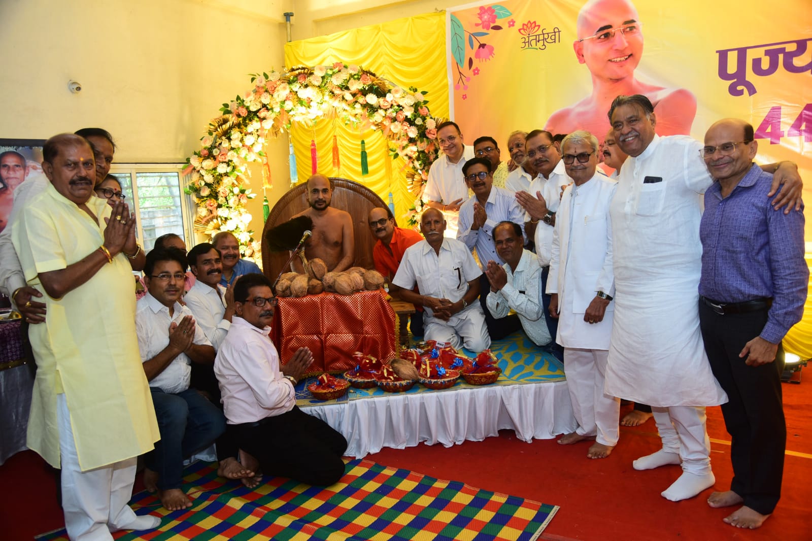 इंदौर। श्रमणचर्या कुटुंब परिवार, श्रीफल जैन न्यूज और अंतर्मुखी मुनि पूज्य सागर जी महाराज भक्त मंडल की ओर से अंतर्मुखी मुनि श्री पूज्य सागर महाराज का 44वां जन्मजयंती महोत्सव बघेरवाल परिसर, एयरपोर्ट के सामने मनाया गया। इस अवसर पर उपस्थित सभी अतिथियों ने दीप प्रज्वलन किया। महिला मंडल की ओर से शास्त्र भेंट किया गया। मंगलाचरण भूमि, इशिका, हर्षिका कासलीवाल ने प्रस्तुत किया। मुनि श्री का पाद प्रक्षालन उनके गृहस्थ जीवन के माता-पिता विमला और सोमचंद जैन एवं उवर्शी जैन द्वारा किया गया।