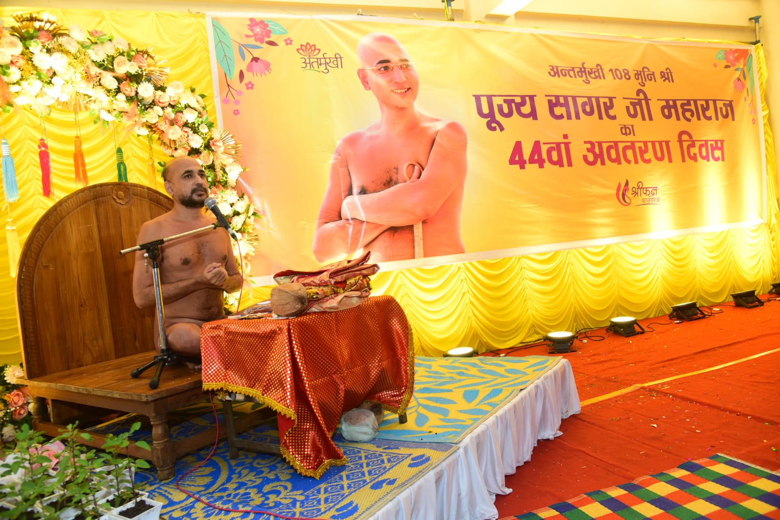 श्रमणचर्या कुटुंब परिवार, श्रीफल जैन न्यूज और अंतर्मुखी मुनि पूज्य सागर जी महाराज भक्त मंडल की ओर से अंतर्मुखी मुनि श्री पूज्य सागर महाराज का 44वां जन्मजयंती महोत्सव बघेरवाल परिसर, एयरपोर्ट के सामने मनाया गया। इस अवसर पर उपस्थित सभी अतिथियों ने दीप प्रज्वलन किया। महिला मंडल की ओर से शास्त्र भेंट किया गया। इस अवसर पर मुनि श्री ने सभी को पौधारोपण का संकल्प भी दिलाया। पढ़िए रेखा संजय जैन की विशेष रिपोर्ट…