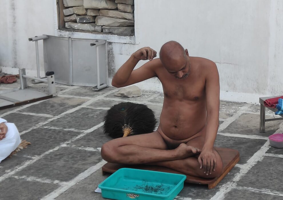 रामगंजमंडी। उष्ण प्रचंड गर्मी के बीच बुधवार की प्रातः बेला में मुनि श्री108 निष्प्रह सागर जी महाराज ने स्वयं अपने हाथों से अपने केशो का लोचन किया। मुनि श्री का उपवास रहेगा। क्या आप खुद अपने हाथों से सिर के या मूंछों के बाल उखाड़ने का साहस करेंगे, शायद नहीं, क्योंकि इसकी असहनीय पीड़ा के कारण आप यह जोखिम नहीं लेना चाहेंगे। अपने हाथों से केशों को उखाड़कर दिगम्बर जैन संत इस बात का परिचय देते हैं कि जैन धर्म कहने का नही बल्कि सहने वालों का धर्म है। जैन धर्म में साधु संत कठिन से कठिन तपस्या को सहजता से सहन कर लेते हैं, कैसा भी मौसम हो, पद विहार करते है, चाहे कितनी भी लंबी यात्रा क्यों ना हो। एक बार आहार ग्रहण करते हैं वो भी खड़े होकर। इन्हीं मूलगुणों में एक मूलगुण कठिन तपस्या है केशलोंच। दिगंबर मुनि एक केशलोंच के बार दूसरी बार केशलोंच कम से कम 2 माह और अधिक से अधिक 4 में करते है, यह इनकी तपस्या का अनिवार्य हिस्सा है। केशलोंच करते हुए मुनि घास फूस की तरह अपने हाथों से सिर, मूंछ और दाढ़ी के बालों को उखाड़ते हैं।
