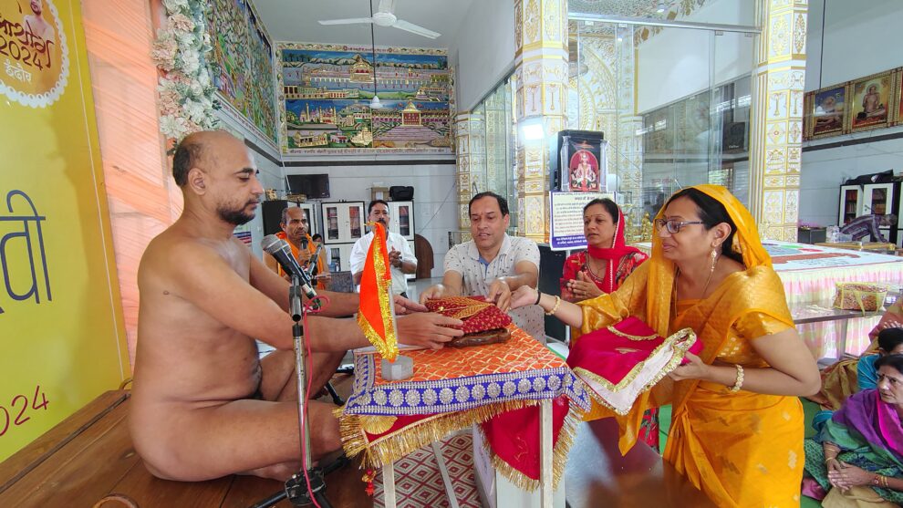 इंदौर। अंतर्मुखी मुनि श्री पूज्य सागर जी महाराज के चातुर्मास धर्म प्रभावना रथ के चतुर्थ पड़ाव के 14वें दिन व पर्युषण पर्व के सातवे दिन श्री आदिनाथ दिगंबर जैन मंदिर, संविद नगर, कनाडिया रोड पर बड़े ही हर्षोल्लास के साथ धर्म प्रभावना हुई।
