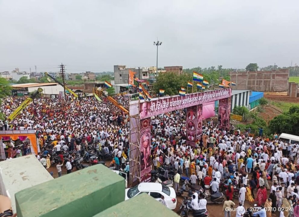 गुरुवार व गुरु पूर्णिमा के शुभ दिन मंगल अगवानी यह भी तो शुभ संकेत है। आज तक ललितपुर की अगवानी सबसे ज्यादा प्रसिद्ध थी पर आज अशोक नगर ने तक्कर देकर अव्वल आ गए है। जो भी किया गया वह बहुत ही बढ़िया है। जब देवता भी मुस्कराहट बिखरा रहे हैं। आज यहां का वातावरण उत्साह व उमंगता के रूप में प्रवेश के समय हर एक घर के बहार कोई भी समाज के हो उन्होंने अपने अपने घरों के बाहर झाड़ू लगाई कहने लगे कि गुरुदेव आने वाले हैं। इतनी सकारात्मक सोच जब सिख धर्म मुसलमान व अन्य हिन्दु धर्म के अनुयायियों ने भी बढ़चढ़ कर इस नगर अगवानी में हिस्सा लिया। बिना किसी विकल्प के सब कार्य पूर्ण हो गए। इस नगर अगवानी में 33 जेसीबी मशीनों से पुष्प वर्षा और चांदी की 121 थालियों से पाद प्रक्षालन हुआ।