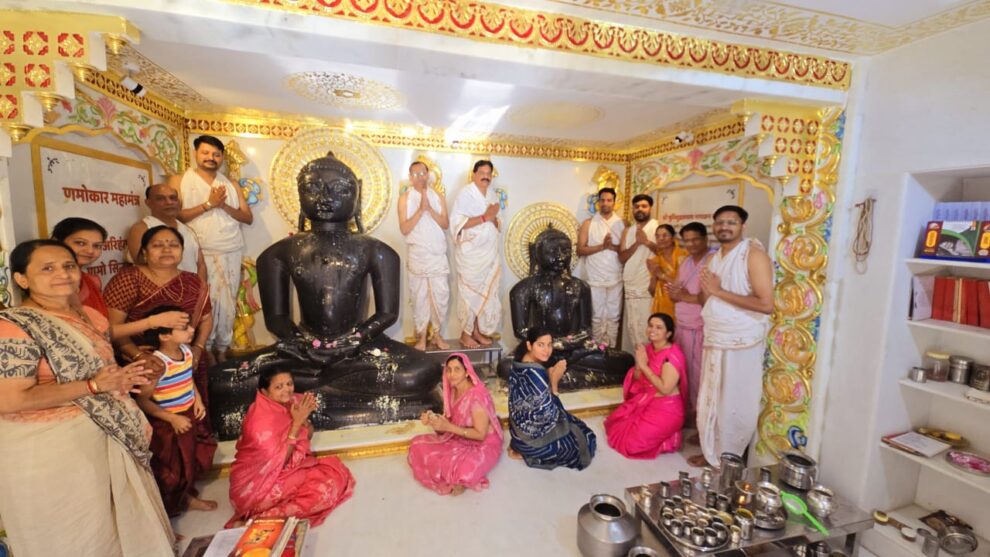 सागवाड़ा। शनिवार को 18 माह के बाद शनिवार और अमावस्या तिथि के मिलने से निर्मित शनि अमावस्या योग पर स्थानीय श्री आदिनाथ दिगम्बर जैन जूना मंदिर में जैन आगम की वर्तमान चौबीसी के बीसवंे तीर्थंकर शनिगृह अरिष्ट निवारक मुनि सुव्रतनाथ भगवान का पंचामृत अभिषेक श्रद्धालुओं द्वारा जल, घी, दूध, दही, सर्वाेषधि, विविधि फलांे के रस से किया गया। साथ ही विश्व शांति कामनार्थ प्रतिमा पर मंत्रोच्चारण के साथ शांतिधारा महिला महासभा अध्यक्ष साधना कोठारी तथा समाज ट्रस्टी रिनेश कोठारी द्वारा की गयी।