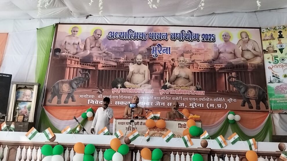 मुरैना जैन मंदिर में जिनेंद्र भक्ति एवं देश भक्ति का अनोखा संगम : युगल मुनिराजों ने स्वतंत्रता दिवस पर विशेष उद्वोधन दिया