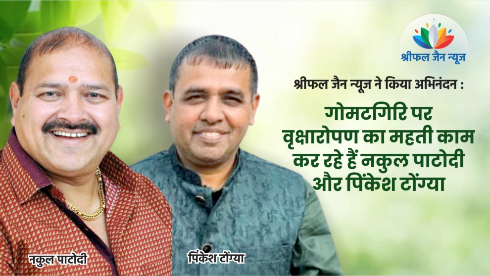 श्रीफल जैन न्यूज की ओर से गोमटगिरि पर वृक्षारोपण के लिए नकुल पाटोदी और पिंकेश टोंग्या का अभिनंदन किया गया है। श्रीफल जैन न्यूज की संपादक रेखा संजय जैन ने कहा है कि आप दोनों ने गोमटगिरि पर जो वृक्षारोपण किया है, वह मानवता को असमय मृत्यु से बचाने का कार्य करेगा। आपने जैन धर्म के अहिंसा धर्म की व्याख्या को सार्थक कर दिखाया है। पढ़िए यह विशेष रिपोर्ट…