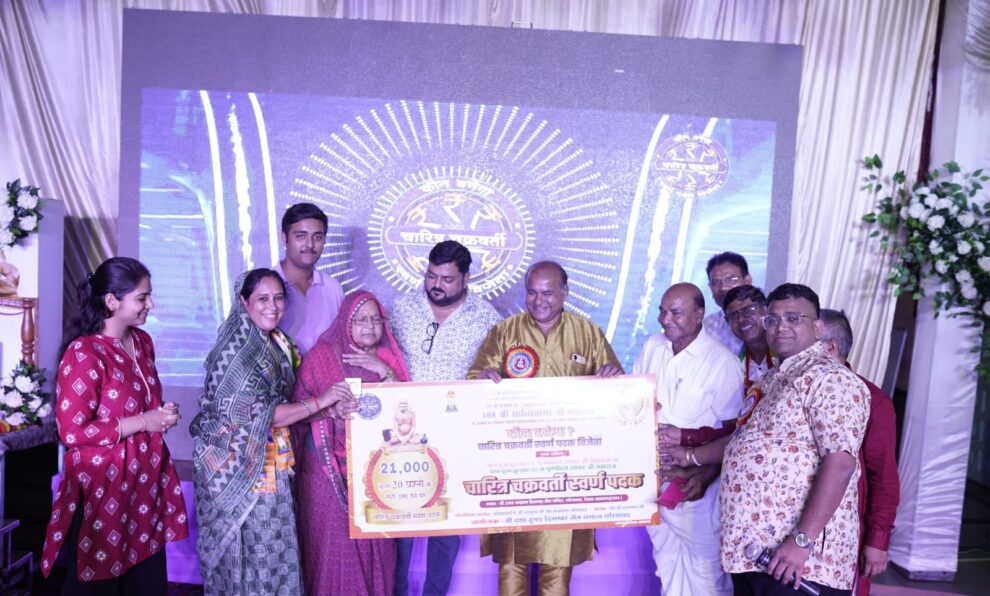 धरियावद। श्री चंद्रप्रभ दिगंबर जैन मंदिर में चल रही चार दिवसीय “कौन बनेगा चारित्र चक्रवर्ती पदक विजेता” प्रतियोगिता के दूसरे दिन शनिवार को प्रातःकालीन सभा में कुल 82 पंजीकृत प्रतियोगियों में से 22 ने भाग लिया। इनमें से नम्रता वणावत ने सभी 20 सवालों के सही उत्तर देकर चारित्र चक्रवर्ती स्वर्ण पदक प्राप्त किया।