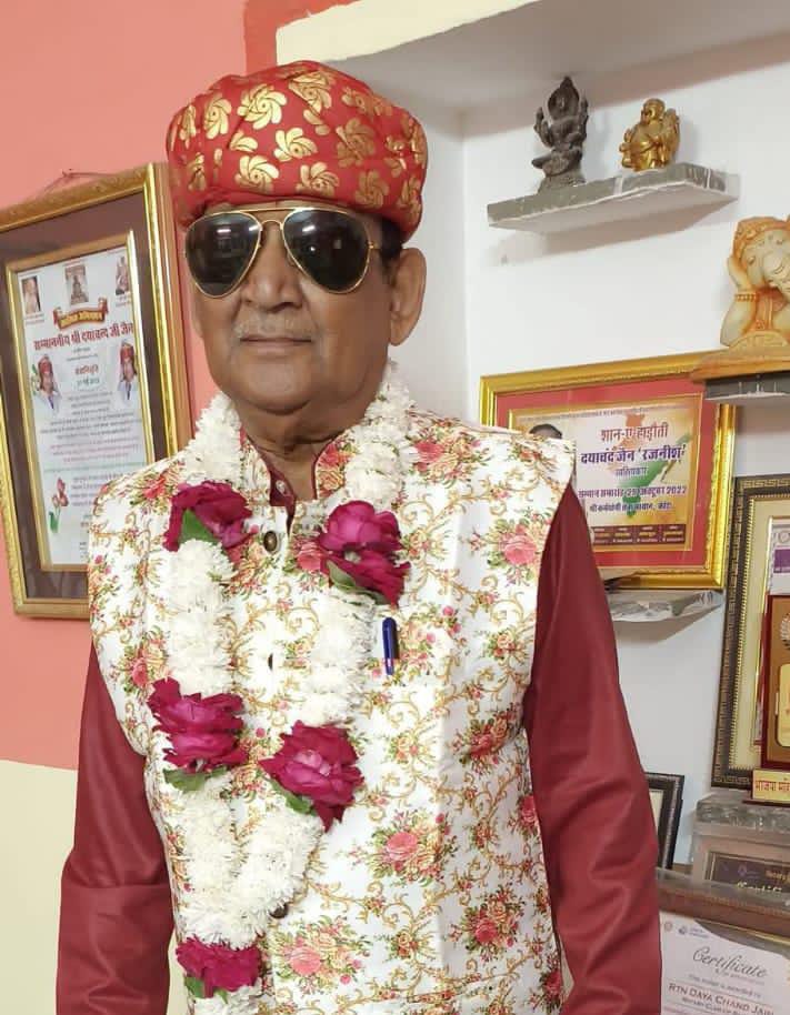 बारां (राजस्थान)। शहर के ख्यात राष्ट्रीय कवि और संगम बारां के जिलाध्यक्ष दयाचंद जैन का मंगलवार को देह परिवर्तन हो गया। उनके देहावसान की खबर से जहां सकल जैन समाज में शोक व्याप्त हो गया तो वहीं जिले सहित राजस्थान के साहित्य जगत भी शोक संतप्त है। दयाचंद जैन की कविताओं के माध्यम से जहां लोगों में राष्ट्रीय चेतना, सामाजिक चिंतन और धार्मिकता के अंश प्रवाहमान रहते थे। जैन के स्वर थमने से जहां बारां शहर में निर्वात पैदा हुआ है तो राजस्थान प्रदेश और हाड़ौती अंचल में भी कभी न भर पाने वाला शून्य स्थापित हुआ है। दयाचंद जैन ने सभी विषयों पर बेखौफ होकर लिखा। वे समाजसेवा में भी अग्रणी भूमिका निभाते रहे। राष्ट्रीय कवि संगम बारां के जिलाध्यक्ष दयाचंद जैन शहर के रोटरी क्लब में भी अपनी महत्वपूर्ण भूमिका से समाज सेवा, नर सेवा का प्रतिमान स्थापित कर रहे थे। रोटेरियन दयाचंद जैन को स्थानीय सकल जैन समाज, रोटरी क्लब, लायंस क्लब सहित शहर की सभी साहित्यिक संस्थाओं के प्रमुखों ने उन्हें श्रद्धांजलि अर्पित की है।