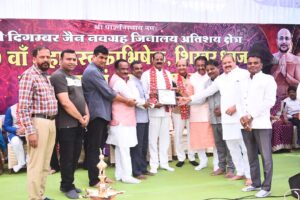 इंदाैर। नवग्रह जिनालय अतिशय क्षेत्र का 19वां महामस्तकाभिषेक एवं शिखर पर ध्वज स्थापना महोत्सव रविवार काे संपन्न हुआ। मुनिश्री श्री सिद्धांतसागरजी महाराज एवं अंतर्मुखी मुनिश्री श्री पूज्यसागरजी महाराज के सानिध्य में विविध अनुष्ठान हुए। विधि विधान का कार्य प्रतिष्ठाचार्य नगर पुरोहित पं. नितिन झांझरी के मार्गदर्शन में किया गया। पंकज जैन एंड पार्टी द्वारा संगीत के जरिये माहाैल काे भक्तिमयी बनाया गया। सभी अतिथियों का स्वागत दिगंबर जैन समाज सामाजिक संसद के अध्यक्ष नरेन्द्र – शकुंतला वेद ने किया। मंगलाचरण पंकज जैन, नितिन झांझरी ने किया। भजन रेखा जैन ने गाया। पाद प्रक्षालन नरेंद्र वेद परिवार ने किया।