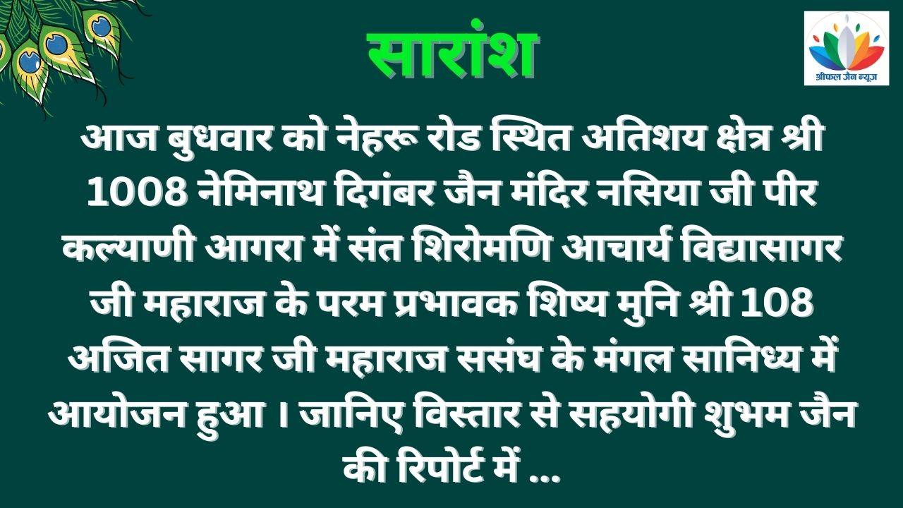 आगरा में मानस्तंभ शिलान्यास समारोह: अतिशय क्षेत्र श्री 1008 नेमिनाथ दिगंबर जैन मंदिर पीर कल्याणी नसिया में आयोजन
