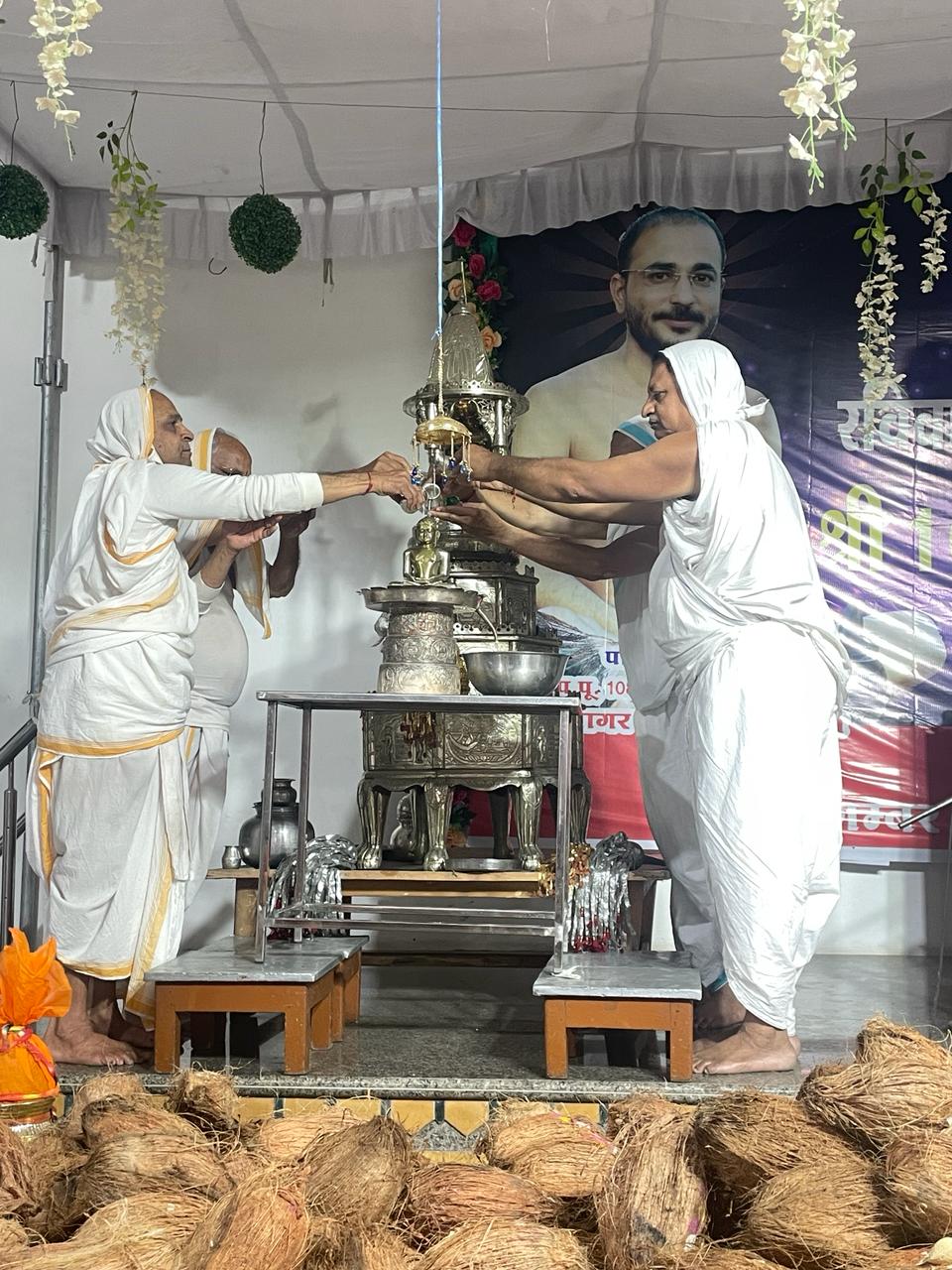 इससे पहले शनिवार को सिद्ध चक्र विधान की आराधना करते हुए मंडल पर 512 अर्घ्य समर्पित किए। भगवान की शांतिधरा करने का लाभ प्रमिला पतंग्या, अनिमेष जैन प्रियंका जैन, ललित जी उर्मिला दोषी को प्राप्त हुआ। मुनि श्री का पाद प्रक्षालन अरविंद रश्मि जैन,रवींद्र जैन द्वारा किया गया। शास्त्र भेंट महिला मंडल द्वारा किया गया।