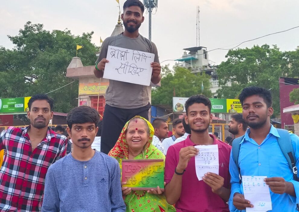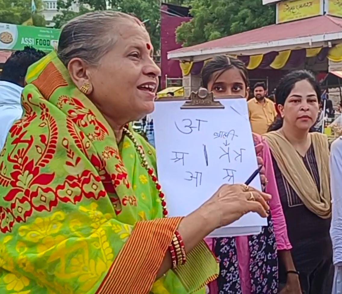वाराणसी। ब्राह्मी लिपि विशेषज्ञा विदुषी डॉ. मुन्नी पुष्पा जैन एवं डॉ. इन्दु जैन राष्ट्र गौरव (दिल्ली) ने नई पीढ़ी को सभी लिपियों की जननी, विश्व की सबसे प्राचीन ब्राह्मी लिपि को सिखाने के उद्देश्य से मां गंगा के अस्सी घाट पर सांयकाल सर्वप्राचीन ब्राह्मी लिपि की कार्यशाला का आयोजन किया। जैनधर्म के प्रथम तीर्थंकर आदिनाथ ने राजा ऋषभदेव के रूप में सर्वोत्तम राज्य किया था। उन्होंने समस्त प्रजा जन को असि-मसि-कृषि-विद्या-वाणिज्य-शिल्प आदि छह कलाएं सिखाकर जीवन जीने की एवं निर्वहन करने की कला सिखाई थी और राजा ऋषभदेव ने सर्वप्रथम बालिका शिक्षा का उद्घोष करते हुए अपनी पुत्री ब्राह्मी को लिपि विद्या एवं पुत्री सुंदरी को अंक (गणित) विद्या सिखाई थी।